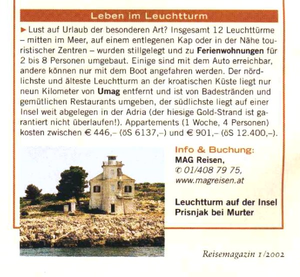 Reise Magazin 1/2002 tipps & info Leben im Leuchtturm